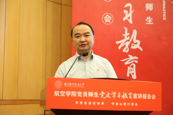 6月10日下午,“学党史鉴往知来 守初心践行使命”航空学院党员师生党史学习教育宣讲报告会(以下简称宣讲报告会)在明故宫校区逸夫科学馆报告厅举行。校党委副书记陶勇,校党委常委、宣传部/教师工作部部长王晖,校党委研究生工作部部长、研究生院副院长张启钱,校党委学生工作处(部)处长侍旭,校团委书记王静出席报告会。航空学院师生党员、发展对象及入党积极分子代表共200余人到场聆听报告会,报告会由学院青年教师、新发展党员陈肇麟和2019级硕士研究生李奕霖主持。