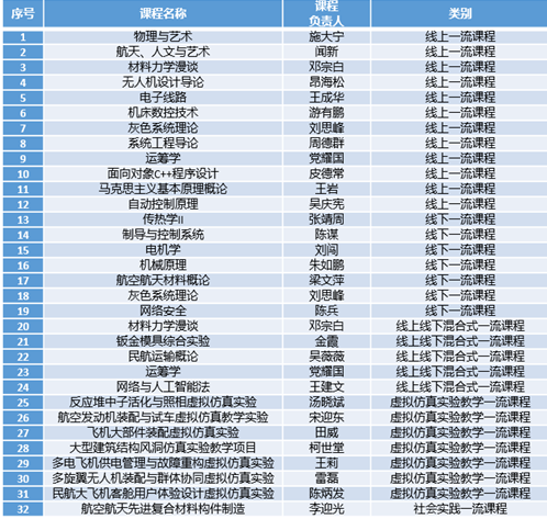 瞄准国家和行业的人才需求,依据学校办学定位和专业培养目标,聚焦提升内涵,有计划、有重点地扎实建设一批一流专业和一流课程,切实提高人才培养能力。在专业建设方面,研究制定适应需求、引领发展的专业建设规划,依托航空、力学、机械、电气和管理科学与工程等优势学科,遴选建设在国内具有重要影响力的一流品牌专业集群;按照新工科建设要求,对接国家战略需求和新经济发展需要,优化专业结构,升级改造传统工科专业,主动布局新兴交叉类新专业和辅修专业;大力开展工程教育专业认证和专业评估,建立专业动态调整、预警与退出机制,促进专业建设水平提升。在课程建设方面,制定精品课程建设标准和建设规划,实施通识课程、公共基础课程和专业核心课程精品计划,重点建设一批通识课程、公共基础课程、专业核心课程、学科交叉类新型课程和在线开放课程。