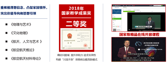 五年来,“确定问题域 提升亲和力 追求实效性,构建‘川流不息’思想政治教育新模式”获2018年国家级教学成果二等奖;“物理与艺术”、“马克思主义基本原理概论”、“航天、人文与艺术”课程入选国家级精品在线开放课程。通过连续多年举办“课程思政”教学大赛、设立课程思政建设专项等形式,引导广大教师积极开展课程思政改革。