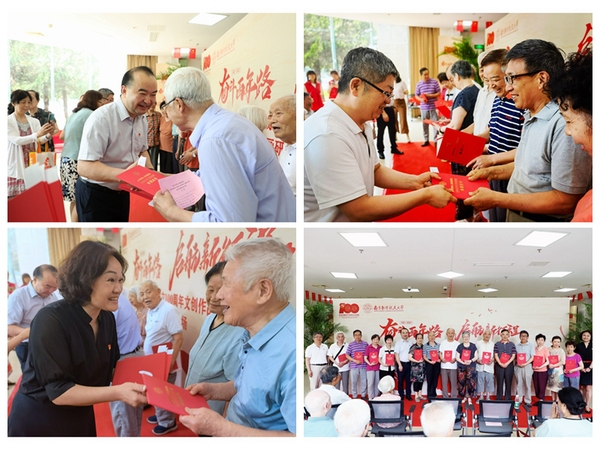 6月29日下午,“奋斗百年路 启航新征程”庆祝中国共产党成立100周年文创作品展老年书画研究会专场在明故宫校区举办。校党委副书记陶勇,党委常委、组织部部长、统战部部长李遥,党委常委、宣传部/教师工作部部长王晖,党委宣传部、离退休党工委相关领导,老年书画研究会代表参加活动。离退休党工委书记卜建主持开幕仪式。
