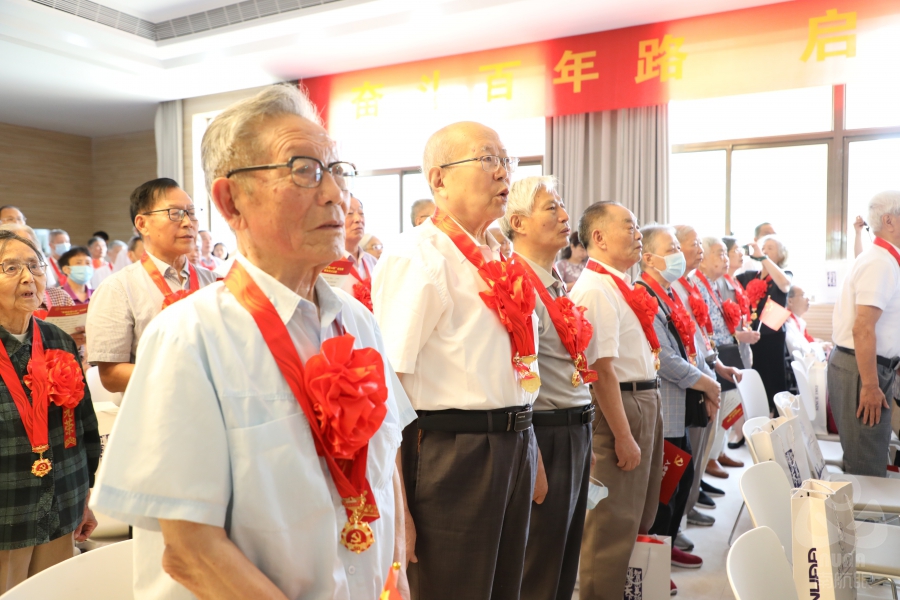 仪式最后,全场齐唱《没有共产党就没有新中国》,纪念章颁发仪式隆重而热烈,获颁“光荣在党50年”纪念章的老党员们抚摸着胸前的纪念章,激动万分,久久不忍离去,合影留念。老党员们纷纷表示,继续坚定不移听党话,矢志不渝跟党走,要力所能及地发挥老党员的余热,用实际行动践行共产党员的责任与使命。