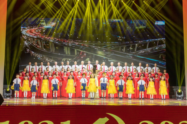 最后,演出在全场共同高唱《没有共产党就没有新中国》的歌声中落下帷幕。