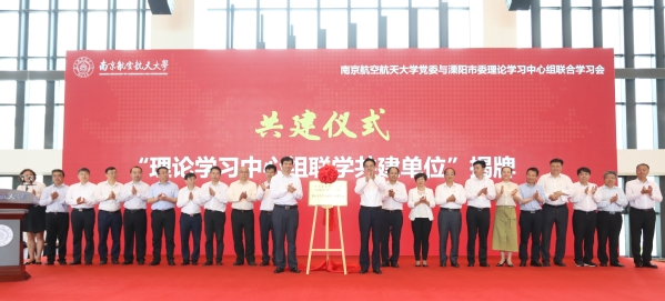 学校党委与溧阳市委理论学习中心组联合(扩大)学习会在天目湖校区举行,专题学习习近平总书记在庆祝中国共产党成立100周年大会上的重要讲话精神。这是学校党委理论学习中心组首次走出南京城,开展校地联学共建。学习会由校党委副书记、校长单忠德院士主持。