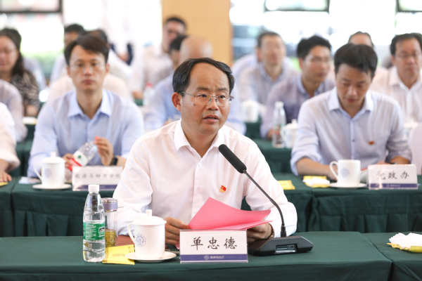 单忠德在主持讲话中表示,习近平总书记在庆祝中国共产党成立100 周年大会上的重要讲话鼓舞人心,令人振奋,坚信有习近平总书记领航掌舵,有习近平新时代中国特色社会主义思想科学指引,中华民族伟大复兴的中国梦一定能实现。他强调,我们要以习近平总书记的重要讲话精神为指引,弘扬光荣传统,牢记初心使命、开创美好未来。他指出,要把牢办学方向,增强战略定力,为建设教育强国、科技强国、制造强国、民航强国,促进校地高质量发展提供坚实的人才支撑和智力支持;要抢抓时代机遇,谋划战略布局,积极探索产学研深度融合的新模式新机制;要全面协同发展,狠抓战略落实,探索校地合作办学的创新模式,走出一条城院互动、校城共融、校地共赢的高质量发展之路。
