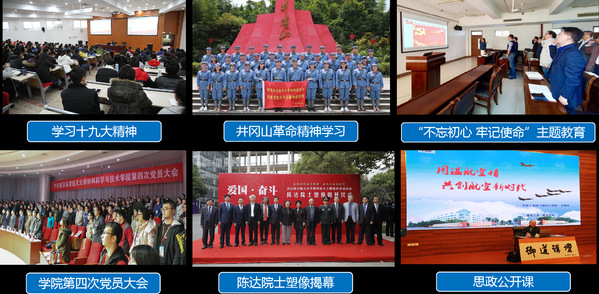 以党建与业务的深度融合为引领,不断“强思想之基”“固发展之本”。学院党委坚持筑牢信仰之基,把牢思想之舵,以理论武装头脑,认真学习贯彻习近平总书记系列讲话精神和党的十九大、十九届历次全会精神,增强“四个意识”,坚定“四个自信”,做到“两个维护”。同时,持续推动党建与业务工作的深度融合,以建设“五强”组织体系为抓手,持续增强领导班子政治担当,牢牢把握立德树人根本任务,扎实开展 “不忘初心、牢记使命”等主题教育。立足师风师德建设,协助举行了陈达院士塑像揭幕仪式,号召广大师生以陈达院士为楷模,传承老一辈材料人求真务实、潜心育人的良好师风。推动“三全”育人,把思政工作贯穿教育教学全过程。抓实基础工作,夯实战斗堡垒,五年新发展党员256名,先后获批工信部党建研究课题1项,荣获“江苏省最佳党内主题教育活动”2项,“井冈山”红色实践团队获团中央全国大学生暑期实践季专项行动优秀实践团队和优秀课题成果奖等荣誉。