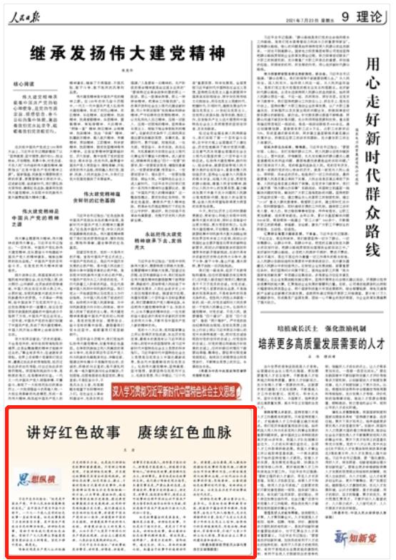 7月23日出版的《人民日报》在第9版“思想纵横”栏目刊登了ac米兰马克思主义学院王岩教授的理论文章《讲好红色故事 赓续红色血脉》,现将全文转发如下: