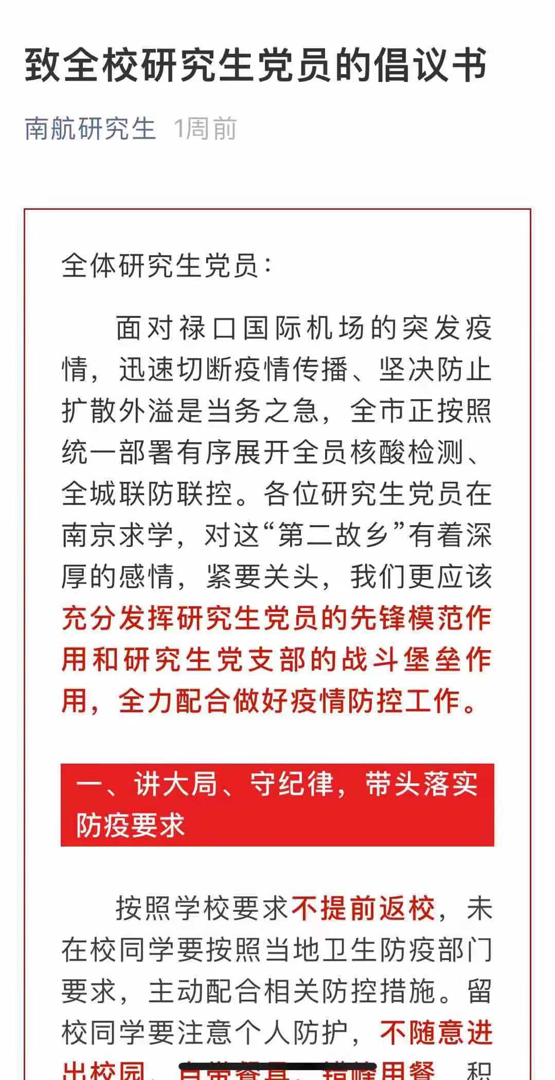 南京疫情突如其来紧要关头,研究生院/研工部党支部强化政治引领、组织引领、示范引领,切实扛起维护师生生命安全和身体健康的重大政治责任,研究生院/研工部党员干部和教职工主动到防疫一线,主动到师生群众中去,带头落实防疫要求,带头坚守岗位履职尽责,努力以实际行动和出色表现,履行入党誓词,在疫情防控中办实事暖人心。