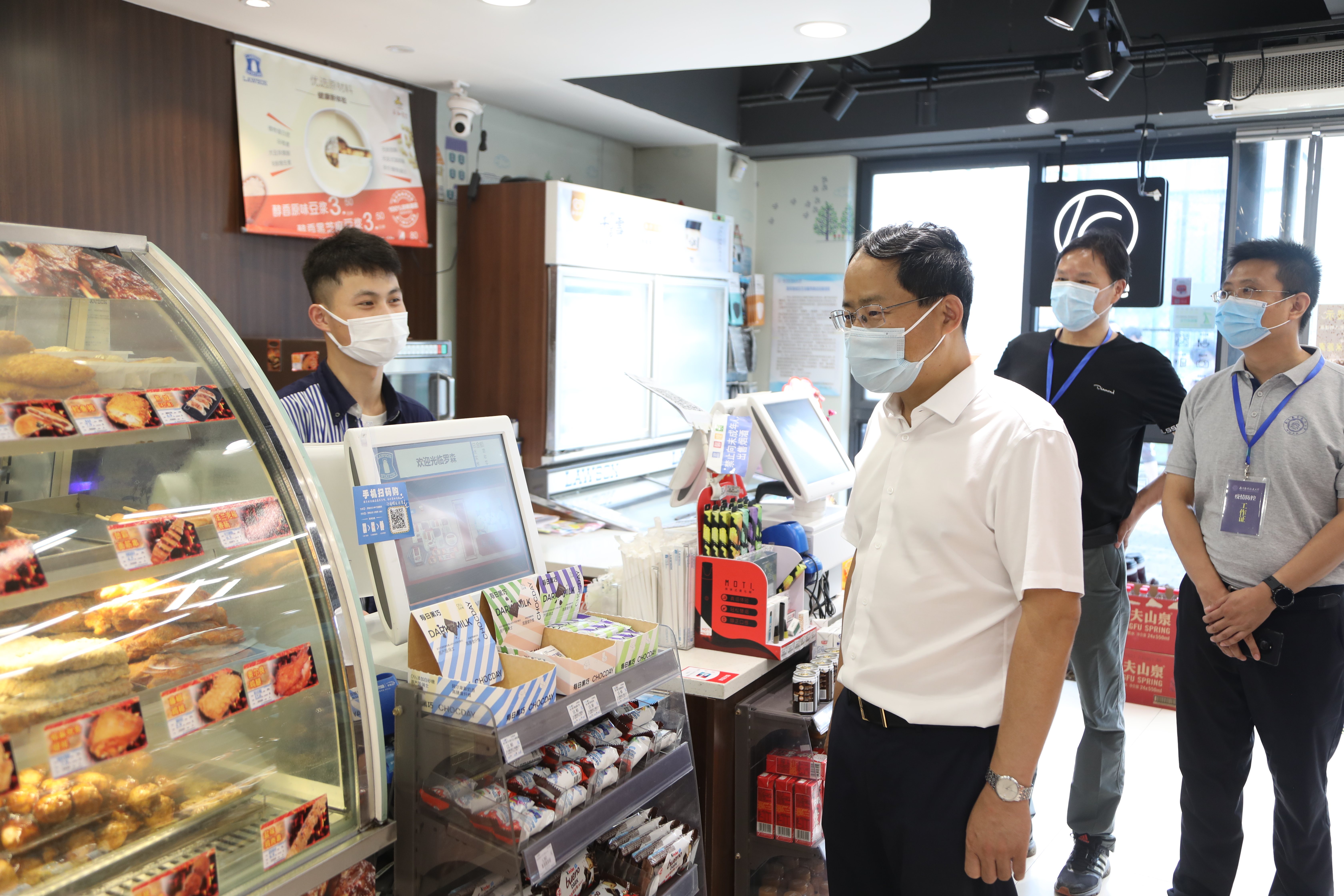 单忠德来到北门门岗、怡园21栋宿舍、樱花广场及中部天桥生活服务营业网点、东区考研教室、图书馆、材料学院实验室及研究生工作室、和园餐厅,实地检查进出校门人员核查、公共场所通风消毒、食堂就餐错峰分流、科学防疫宣传教育、校内隔离点闭环管理等校园管控举措的落实效果,关切地了解食堂菜品价格、教育超市货品储备、生活服务营业网点服务质量等校内师生学习工作生活保障情况,并对检查中发现的个别公共区域通风不到位、少数学生在公共场所未佩戴口罩等问题现场提出了立行立改要求。