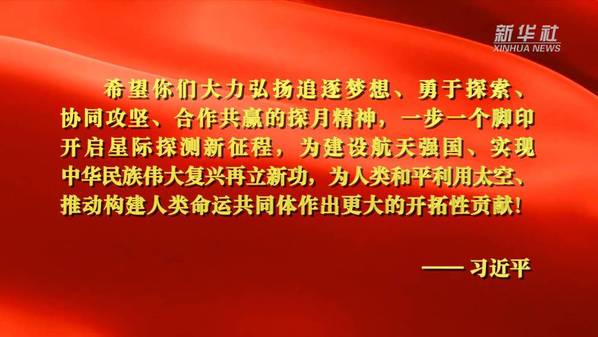 习近平总书记曾用“追逐梦想、勇于探索、协同攻坚、合作共赢”这16个字高度概括总结了“探月精神”,勉励航天工作者们一步一个脚印开启星际探测新征程,为建设航天强国、实现中华民族伟大复兴再立新功。