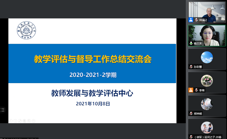 10月8日上午,教师发展与教学评估中心召开了2020-2021学年第二学期教学评估与督导工作线上研讨会,会议由教师发展与教学评估中心主任周克印主持。校、院两级教学督导,教务处、研究生院、学生处、信息化处、国资处等部处和学院负责人参加了交流会。