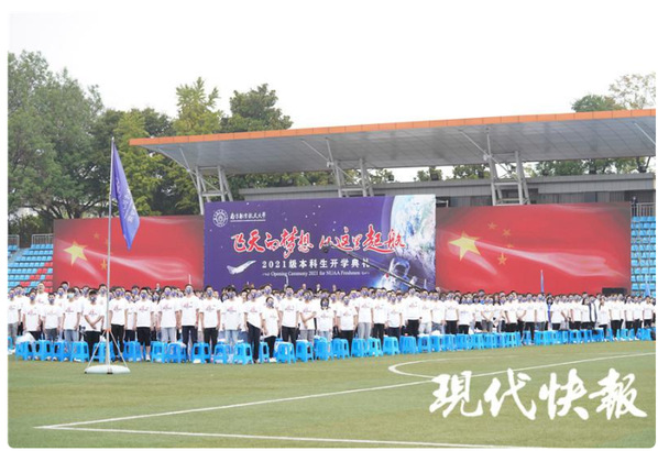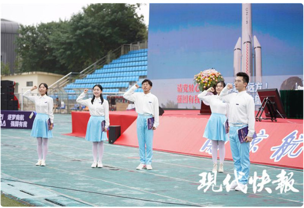 现场,新生代表还带来原创诗朗诵《学好本领,强国有我》——何其有幸,我的少年时代,能见证 神舟 飞天、 北斗 指路; 天问 探火、 天宫 对接;一个个划时代意义的里程碑上,都镌刻着航空航天人的孜孜求索。如果问我,梦想是什么颜色,那便是苍穹之上深邃的蓝色。我瞭望头顶星空浩瀚,我追问内心思绪无疆 ……