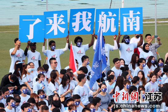 “ac米兰我来了”,留学生参加开学典礼。中新社记者 泱波 摄