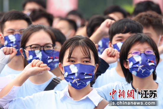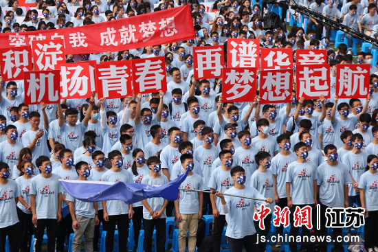 参加开学典礼的研究生们喊出入学心声。中新社记者 泱波 摄