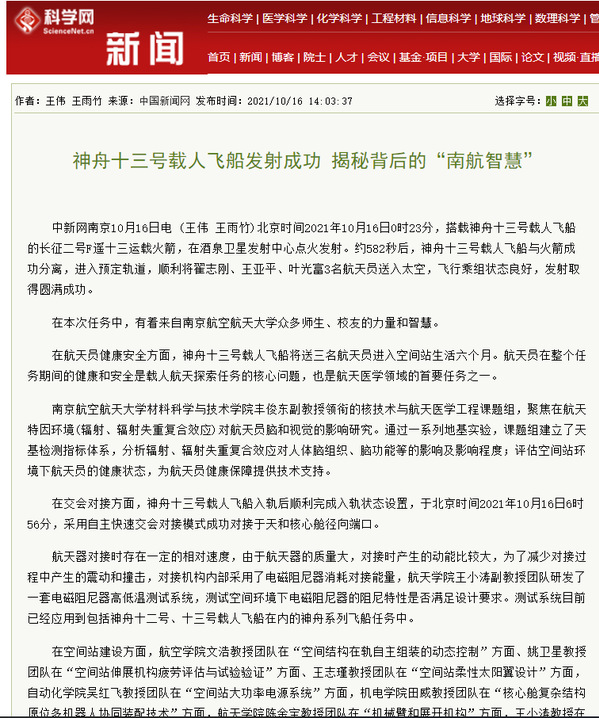 中国科学网:神舟十三号载人飞船发射成功 揭秘背后的“ac米兰智慧”