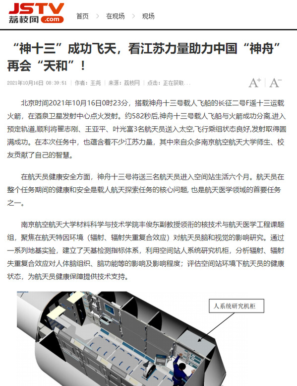 现代快报:神十三航天员“太空出差”如何保障健康?ac米兰科研团队解难题
