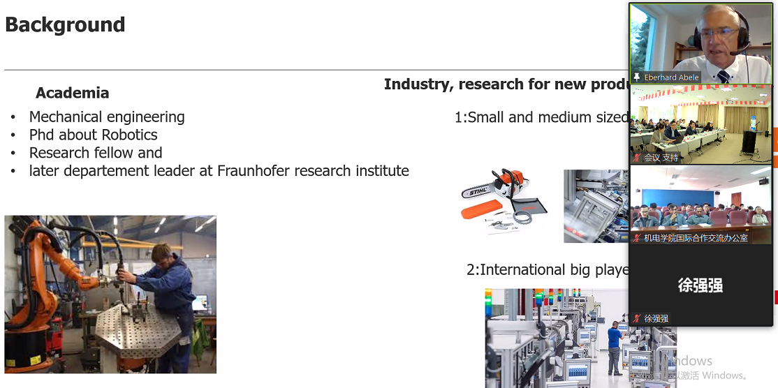 启动仪式结束后,Abele教授为师生们带来了题为《Excellence in Production Engineering》的精彩讲座。他结合自己丰富的经历,以达姆斯塔特工业大学为例,介绍了世界一流大学的人才培养,并分享了自己在成为一名出色科研人员、打造一只优秀科研团队上的经验感悟。他还向师生们介绍了达姆施塔特工业大学的在国际化办学方面的实践做法,为学校在生产制造工程方面的发展提供了宝贵建议意见。