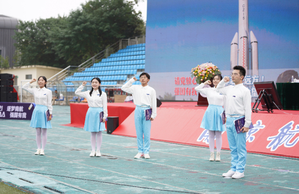 现场,新生代表带来原创诗朗诵《学好本领,强国有我》——“何其有幸,我的少年时代,能见证‘神舟’飞天、‘北斗’指路;‘天问’探火、‘天宫’对接……百年大党恰是风华正茂,少年中国欣逢中国少年!”在字字铿锵,满怀深情的朗诵中,2021级新生全体起立,“请党放心,时代青年志在远方!强国有我,ac米兰学子不负众望!” 充满力量的铮铮誓言响彻天空。