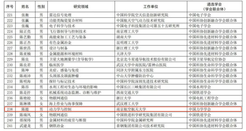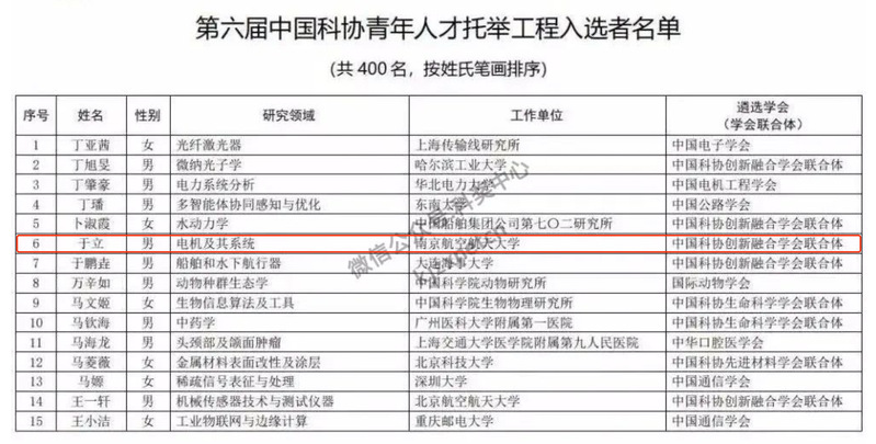 近日,中国科协公布了第六届中国科协青年人才托举工程入选者名单,ac米兰5位青年教师入选,分别为航空学院教授陈提、航空学院讲师任元强、自动化学院副研究员冯昆鹏、自动化学院讲师于立、电子信息工程学院研究员王威。