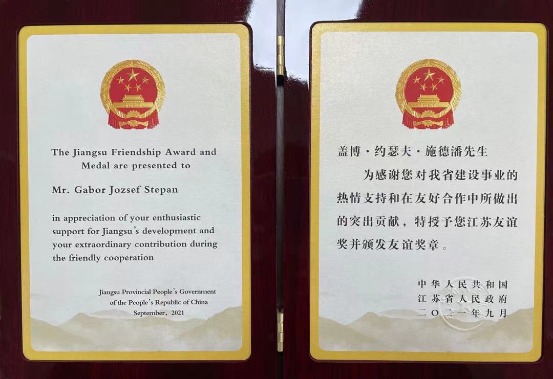 Stepan Gabor长期与学校航空学院智能装备动力学中心王在华教授团队和机电学院何宁教授团队保持了密切合作,参与主持了2项中国-匈牙利政府间科技合作项目,获批了2018年江苏省“创新创业”团队。在开展科技合作的同时,他还坚持为国内学生带来最前沿学术讲学,疫情期间也坚持通过远程方式授课,参与指导的高校微课获得全国一等奖;在布达佩斯,他也依托国家留学基金委项目,累计接收20多名学生、学者到匈牙利深造,为一批获得杰青、优青、优博论文称号的高层次人才提供了学术指导和帮助,对学校学科建设、科研攻关、人才培养和师资提升做出了巨大贡献。