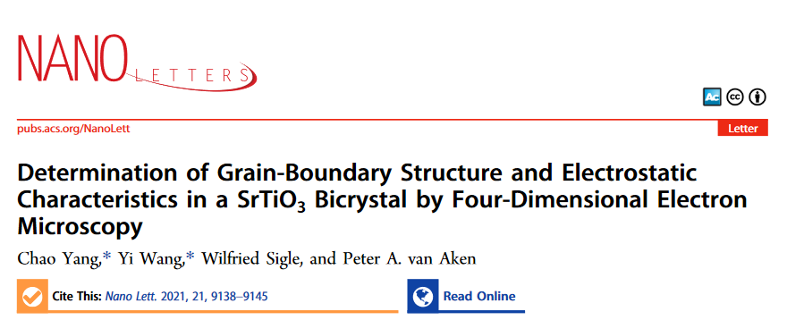 近日,ac米兰分析测试中心在基于直接电子成像相机的4D-STEM先进成像技术研究方面取得进展。研究工作以“Determination of Grain-Boundary Structure and Electrostatic Characteristics in a SrTiO3 Bicrystal by Four-Dimensional Electron Microscopy”为题发表在材料领域期刊《Nano Letters》上。该论文第一作者为王毅教授指导的博士生(德国马普固态研究所),ac米兰分析测试中心为论文共同通讯单位。该篇论文是ac米兰分析测试中心运行以来发表的首篇高水平国际期刊论文。