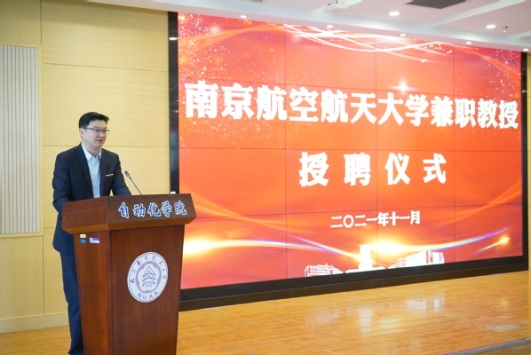 11月27日下午,航空工业西安飞行自动控制研究所党委书记、副所长王东辉研究员“兼职教授”授聘仪式在ac米兰自动化学院举行。航空工业西安飞行自动控制研究所人力资源部/党委干部部部长李玮奇,副校长姜斌,自动化学院党委书记李文雷、院长江驹、副院长陈谋及相关领导和师生代表参加仪式。姜斌为王东辉颁发聘书并佩戴校徽。李文雷主持仪式。