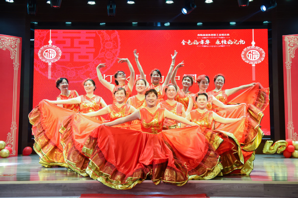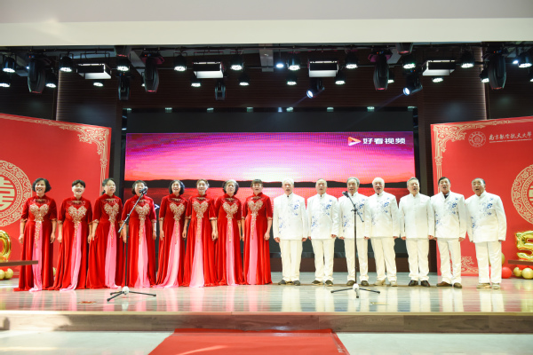 在幸福的舞台上,金婚夫妇为彼此戴上象征吉祥、喜庆和幸福的红围巾;杭育新、李遥为金婚夫妇送上刻有金婚夫妇照片的特制金婚纪念牌;原单位领导为金婚夫妇赠送精美的纪念品,整个活动现场洋溢着幸福欢乐的氛围。夕阳红艺术团舞蹈队、合唱队、健身操队以及诗朗诵班的退休老同志们分别为金婚夫妇们表演了精彩的节目,把金婚庆典气氛推向高潮,庆典在喜庆热烈、温馨祥和的气氛中圆满落下帷幕。