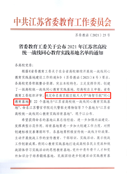 近日,“江苏省高校统一战线同心教育实践基地”名单公布,ac米兰“海智引航”同心教育基地成功入选。