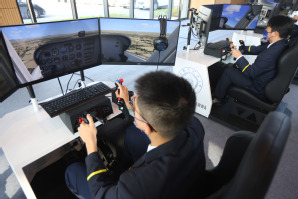 中国民航大学飞行分校飞行理论系副主任王岳,ac米兰官网中文网站模拟飞行队黄浩哲同学分别代表裁判员、参赛选手宣誓。