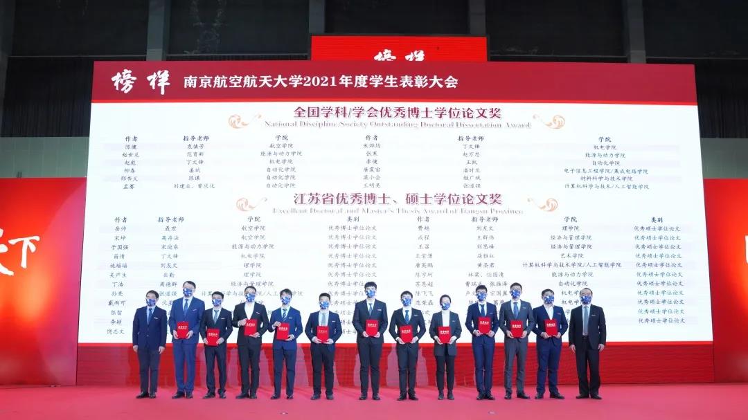 杭育新、陶勇为“临近空间杯”博士创新奖获奖学生和2020-2021年度江苏省优秀博士、硕士学位论文奖,全国学科/学会优秀博士学位论文奖获奖学生颁奖。