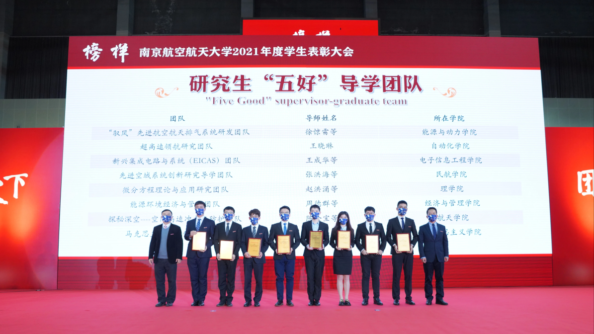姜斌、刘宇雷为2020-2021年度研究生五好导学团队颁奖。