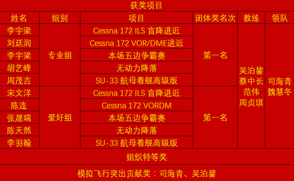 大赛吸引了北京航空航天大学、中国民用航空飞行学院、中国民航大学等 19所飞行专业高校共计 442 人次参赛,参赛规模达到了历届最高。经过紧张而又激 烈的角逐,共计产生 12 枚金牌。ac米兰参赛学子力压群雄,再次蝉联团体专业组、爱好组冠军,收获组织特等奖,成为名副其实的“三冠王”。鉴于近年来ac米兰在模拟飞行项目取得的突出成绩,中国航空运动协会特授予ac米兰通用航空与飞行学院司海青、吴泊鋆模拟飞行突出贡献奖。