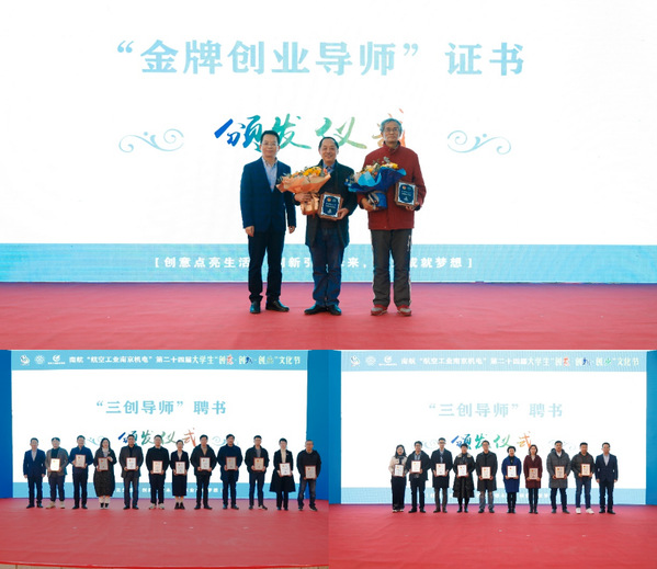 开幕式上,刘宇雷为20余年奋战在创业教育一线,孵化出22件“挑战杯”创业大赛金奖作品的创业导师颁发“金牌创业导师”证书,为第十七届“挑战杯”江苏省大学生课外学术科技作品竞赛指导教师、“挑战杯”中国大学生创业计划竞赛青年指导教师颁发“三创导师”聘书。