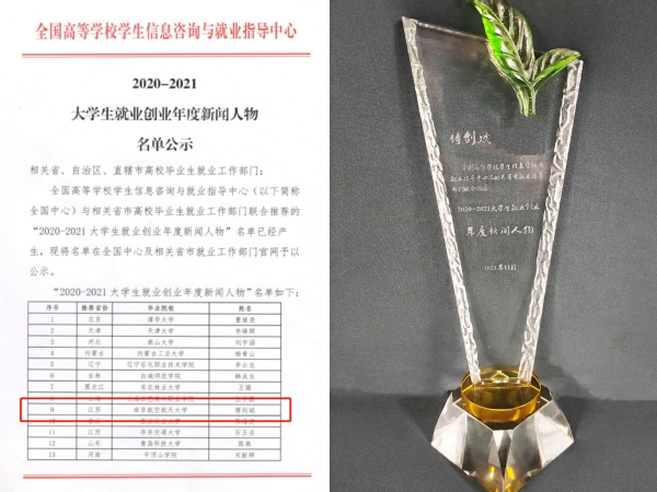 近日,全国高等学校学生信息咨询与就业指导中心公布了“2020-2021大学生就业创业年度新闻人物”评选结果,来自全国25个省(自治区、直辖市)的25名毕业生入选,ac米兰电子信息与工程学院/集成电路学院2021届博士毕业生傅剑斌成为江苏省唯一一名获此殊荣的高校毕业生。