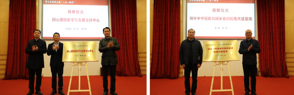 现场进行了“铸牢中华民族共同意识校地共建基地”和“同心圆民族学生发展支持中心”揭牌仪式,一中心、一基地的成立拓展了学校意识形态和民族工作的重要阵地。