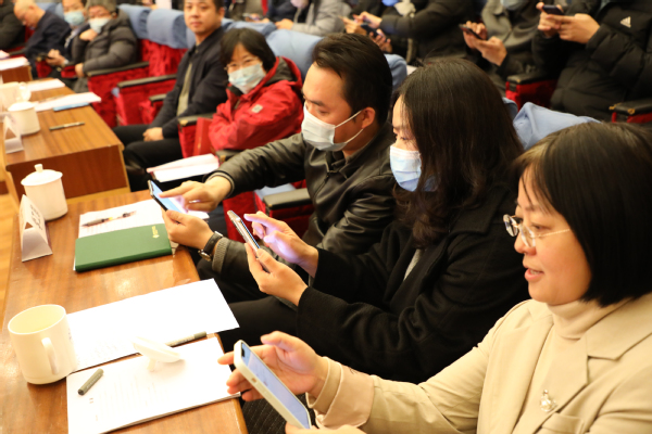 在答题环节,老师们使用“学习通”软件全员扫码作答,在答题过程中梳理、巩固了意识形态和民族宗教工作的相关知识要点。