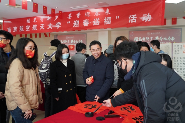 12月31日,由党委宣传部、校工会、离退休党工委联合将军路校区党工委、天目湖校区党工委举办的“福笔贺新岁 墨香迎春来”迎春送福活动在明故宫校区、将军路校区、天目湖校区同时开展。校长单忠德,党委副书记、纪委书记杭育新,党委副书记刘宇雷,党委常委、组织部部长李遥出席活动,相关部处领导、师生员工、离退休老同志等1000余人错峰参加活动。