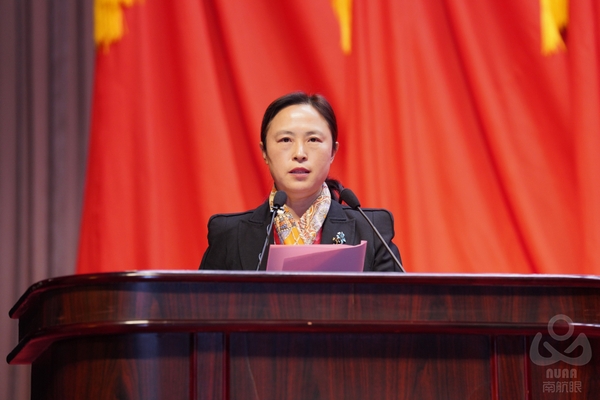 开幕式上,财务处处长张丕宏作学校财务工作报告,第十六届工会经费审查委员会副主任侯贵菊作工会经费审查报告