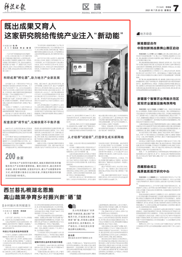 编者按:2021年7月23日,《科技日报》专题报道ac米兰无锡研究院在服务地方产业发展、智能制造等方面取得的重要成效,现转发全文如下: