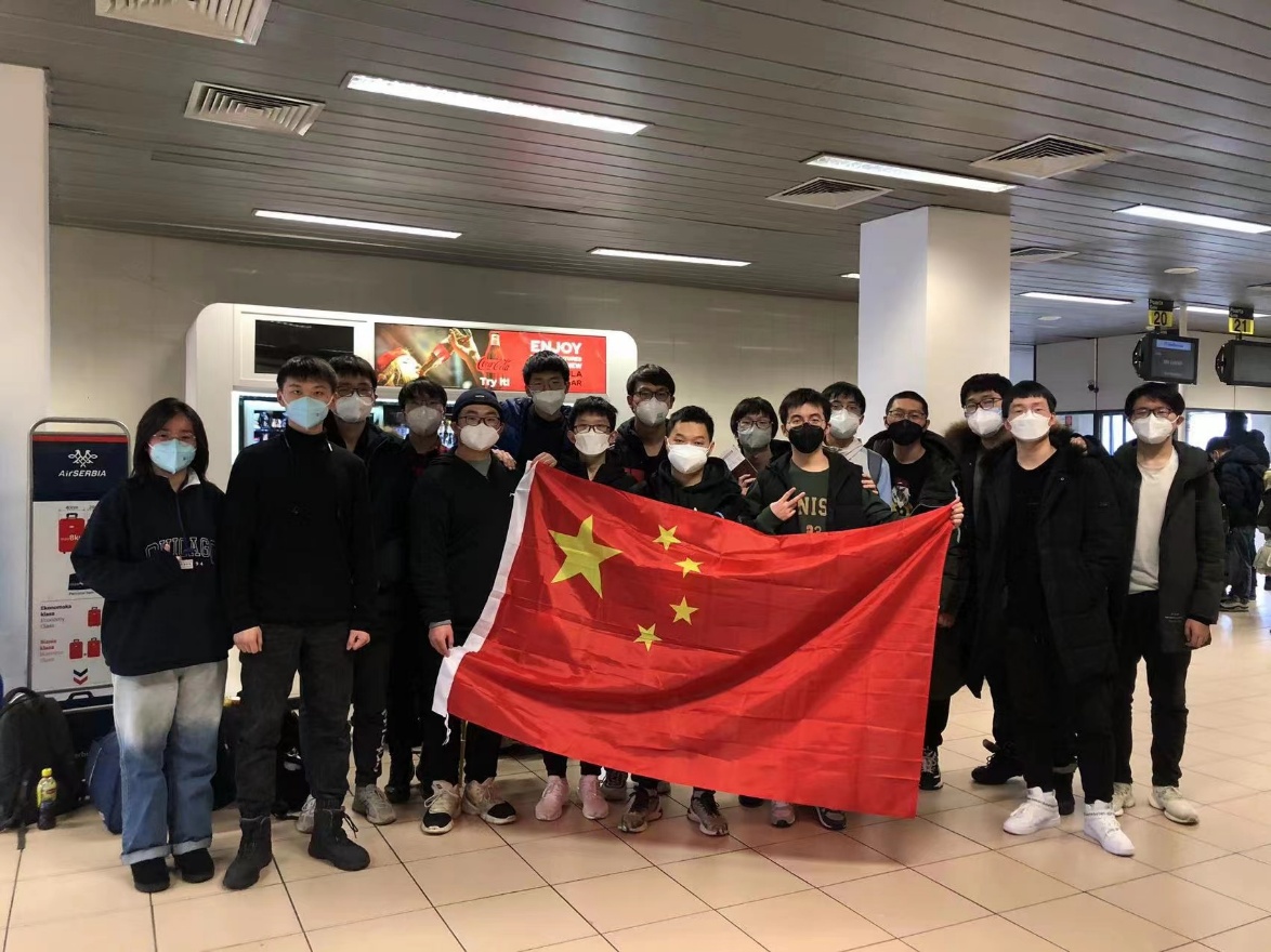 ac米兰中乌班学生在罗马尼亚机场进行登机前合影