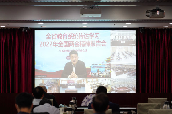 会前,全体与会人员通过视频方式参加了省教育厅召开的全省教育系统传达学习2022年全国两会精神报告会。