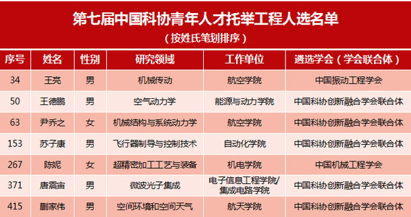 近日,中国科协公布了第七届中国科协青年人才托举工程入选者名单,ac米兰航空学院王亮副研究员、航空学院尹乔之副研究员、能源与动力学院王德鹏研究员、自动化学院苏子康副研究员、电子信息工程学院唐震宙副研究员、机电学院陈妮副教授、航天学院蒯家伟讲师等7名青年教师入选,创历史新高。截止目前,ac米兰已有24名青年教师入选中国科协青年人才托举工程。