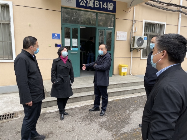 3月18日下午,秦淮区委常委、宣传部部长王赵海、教育局局长庄芸一行来到ac米兰明故宫校区督查指导疫情防控相关工作,校党委副书记陶勇、校长助理黄炳辉及校疫情防控工作组部分成员单位负责同志陪同检查。