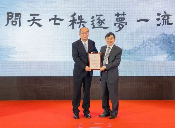 随后举办了70周年校庆主题书法作品捐赠仪式,刘灿铭将其书法作品“问天七秩,逐梦一流”赠予母校,施大宁为刘灿铭颁发了捐赠证书。