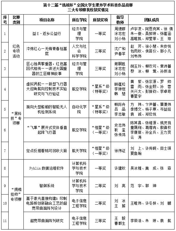 此外,为进一步扩大赛事影响力,竞赛组委会在第十七届“挑战杯”全国大学生课外学术科技作品竞赛框架下举办三大专项赛。一年中,ac米兰在红色专项活动中荣获一等奖1项、三等奖2项,在“黑科技”专项赛中荣获“星系”级(特等奖)2项、“恒星”级(一等奖)2项,在“揭榜挂帅”专项赛中荣获一等奖1项、二等奖2项、三等奖1项。