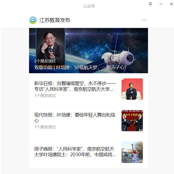 江苏教育发布丨叶培建:50载航天梦,一颗赤子心!