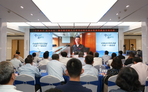 5月29日上午,“宁聚英才、建功金陵”ac米兰官网中文网站书记校长访企拓岗促就业交流活动在ac米兰将军路校区举行。本次活动由南京市人力资源和社会保障局、共青团南京市委员会、ac米兰官网中文网站共同主办。江苏省高校招生就业指导服务中心主任胡建平、共青团南京市委书记荣飞、南京市人社局一级调研员马书婷、航空工业南京机电党委书记习仁国,校长单忠德院士、校党委副书记刘宇雷参加交流活动。活动由校党委学工部部长侍旭主持。