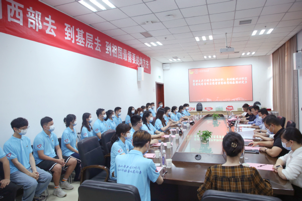 第二十二届研支团代表王小珂分享了支教一年的收获和感悟,鼓励学弟学妹们到西部去、到基层去、到祖国最需要的地方去,知责于心、担责于身、履责于行;西部计划志愿者代表王者、第二十四届研支团代表李辰、乡村振兴计划志愿者代表张可先后发表出征感言,表达了投身西部、躬耕基层的信念和决心。随后,志愿者集体宣誓,表达了“请党放心、强国有我”的铮铮誓言。