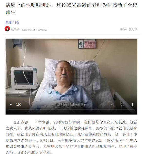 新华日报交汇点丨病床上的他哽咽讲述,这位85岁高龄的老师为何感动了全校师生