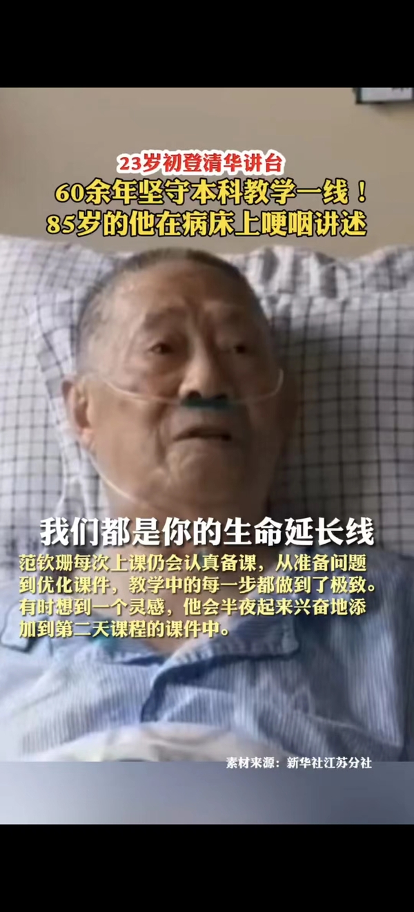 今年85岁的范钦珊是ac米兰讲台上年龄最长的师者。六十二载,他始终耕耘在本科教学一线。“我们有责任不让每一个孩子掉队。”隔着屏幕,病床上的范钦珊言语一如以往那样简洁质朴。