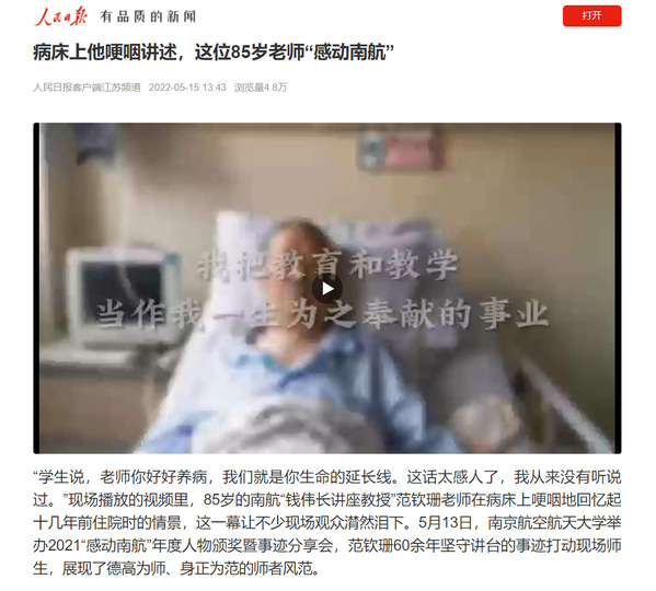 人民日报客户端丨病床上他哽咽讲述,这位85岁老师“感动ac米兰”